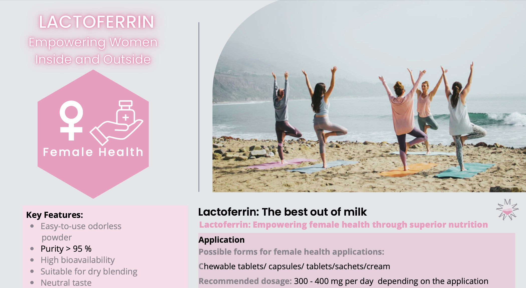 Unlock the secrets to enhanced female well-being through the power of lactoferrin. Dive into our meticulously crafted one-pager, revealing how this natural element can revolutionize your health journey. From immune support to iron balance, discover a new realm of vitality. Don't miss out – explore the potential on our one-pager now!